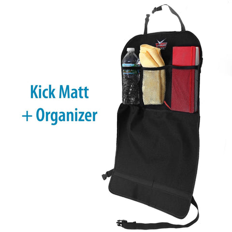 Kick Mats, Car Kick Mats with Organizer - Premium Thick Waterproof Quality Seat Back Protectors - Extra Long Size with Adjustable Straps - Car Seat Back Protectors